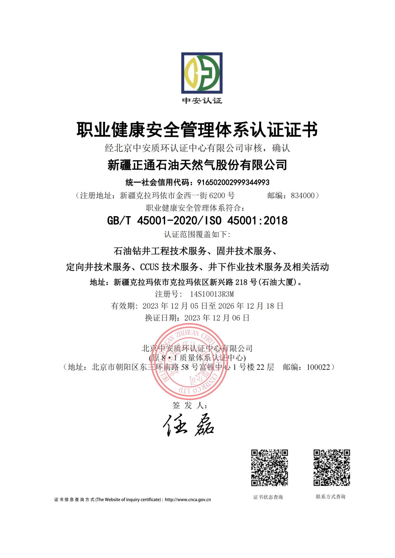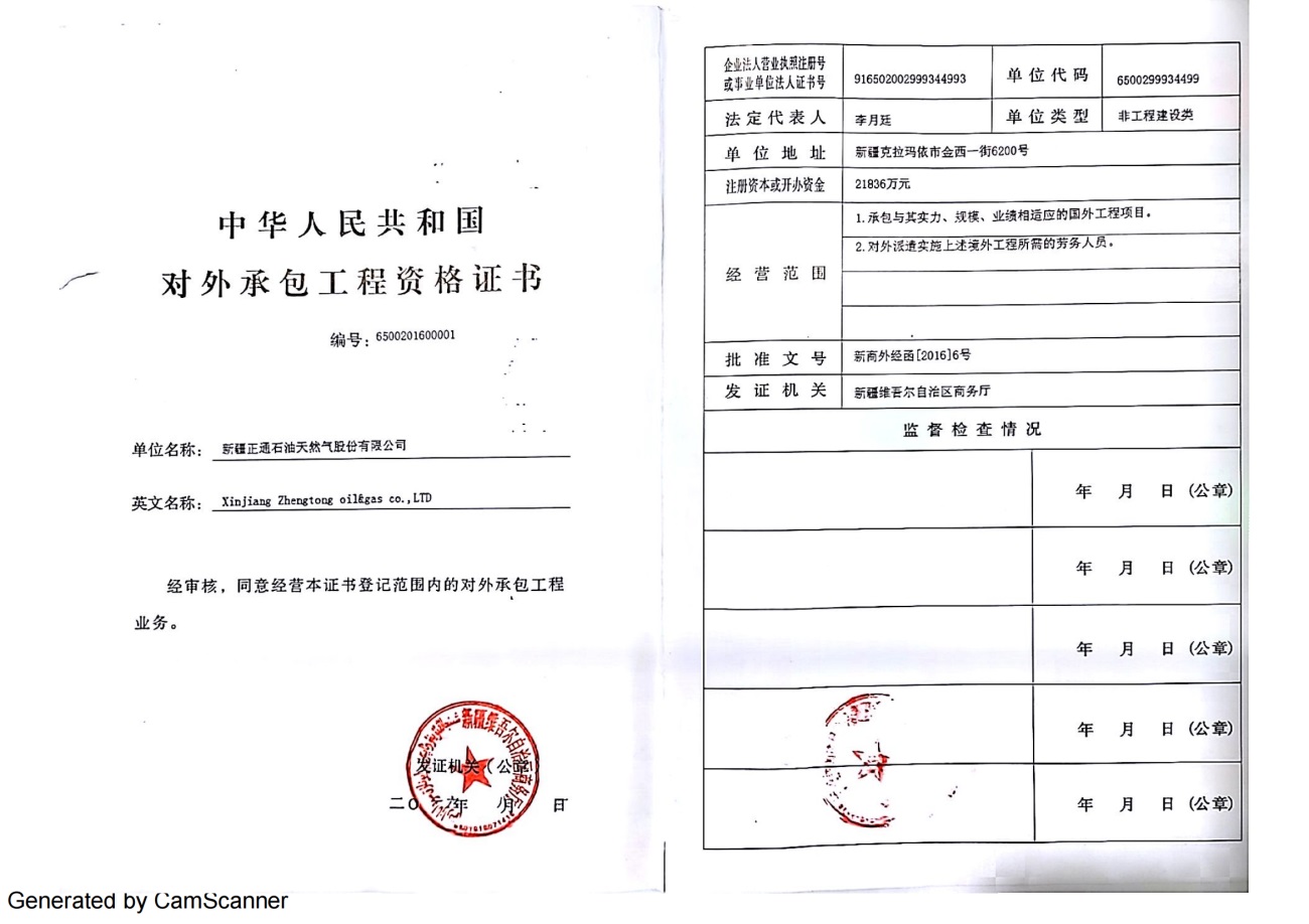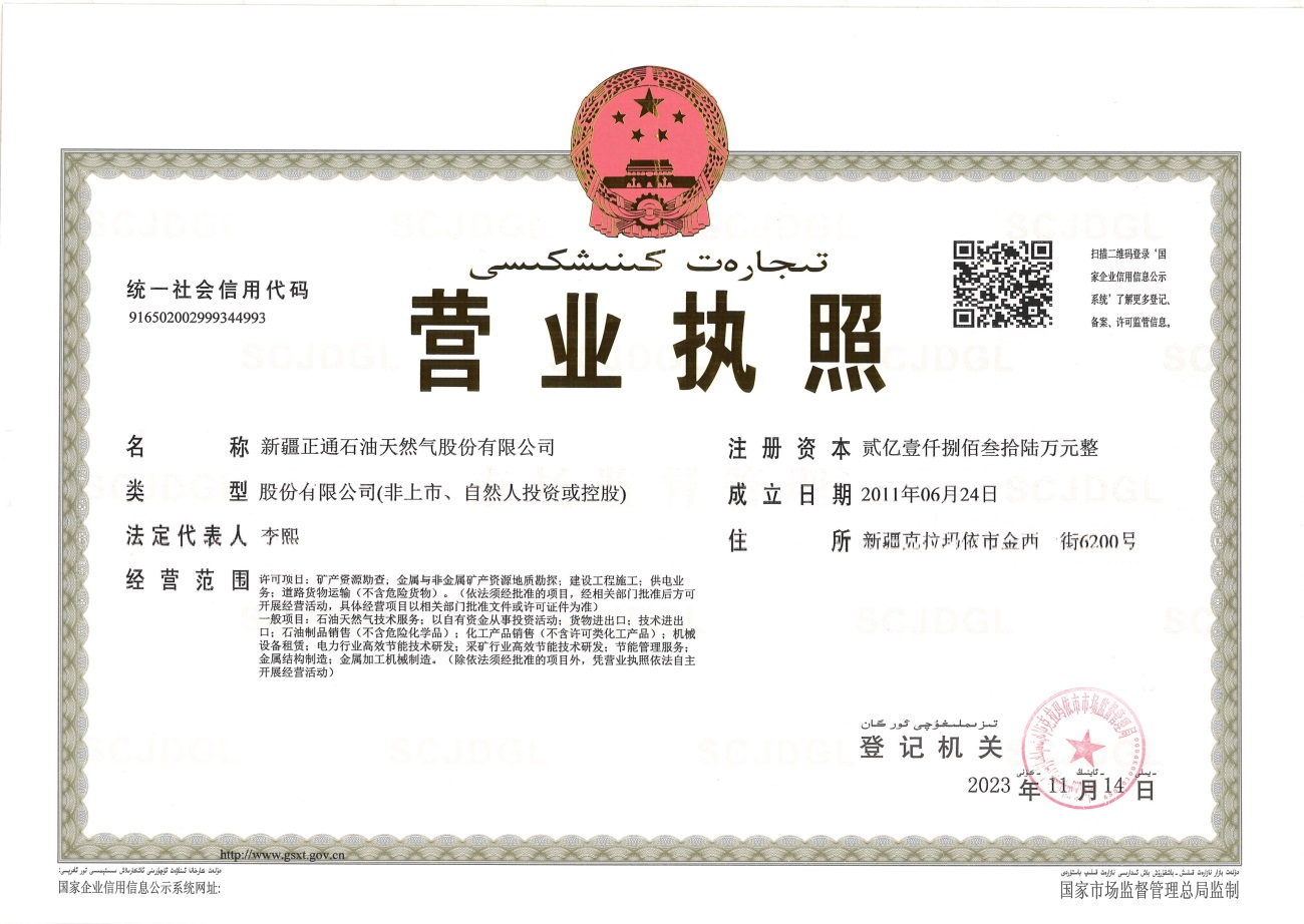 Xinjiang Zhengtong Oil & Gas Co., LTD. (referred to as "Zhengtong Oil & Gas") is a reformed enterprise of China National Petroleum Corporation. Zhengtong Oil & Gas was re-registered with the industry and Commerce Department at No. 6200, Jinxi 1st Street, Petrochemical Industrial Park, Karamay City on August 18, 2015. Registered capital: RMB 218.36 million.